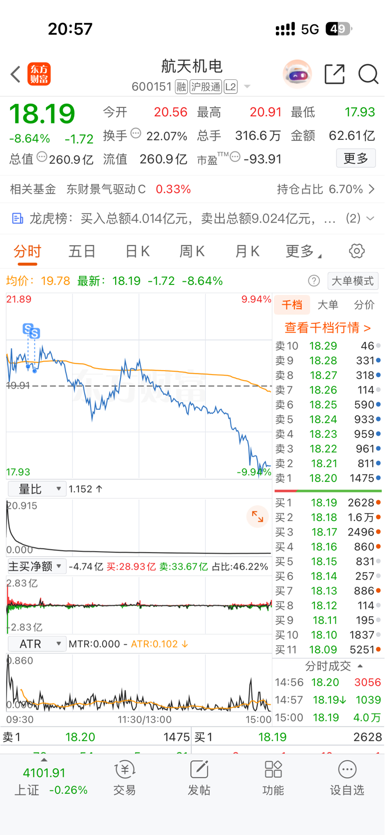 $航天机电(SH600151)$ 哦弥陀佛,逃顶成功,看看下周咋样,择机回来