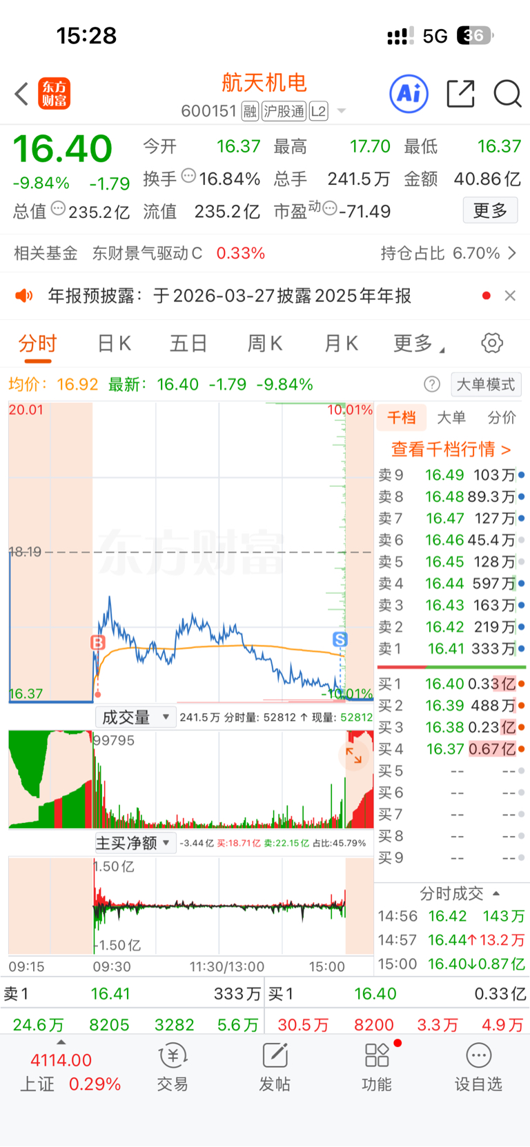 $航天机电(SH600151)$ 开盘把最后的5万wd补进去了 恨自己没有在高点T出去而是拿到了57分把底仓全部清了 亏35个点离场 如果可以重生再也不碰了。。。走了兄弟们