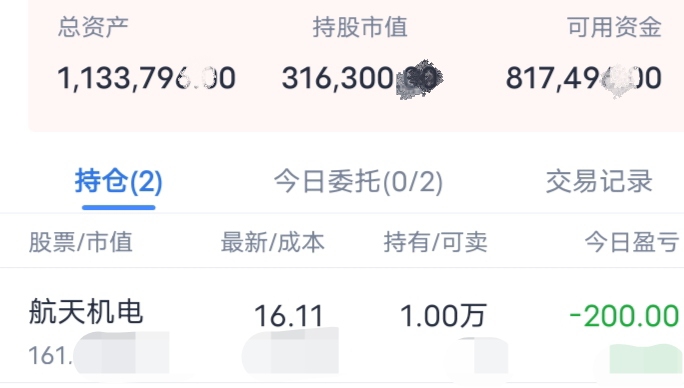 $航天机电(SH600151)$ ,还剩下1万股,T完了。