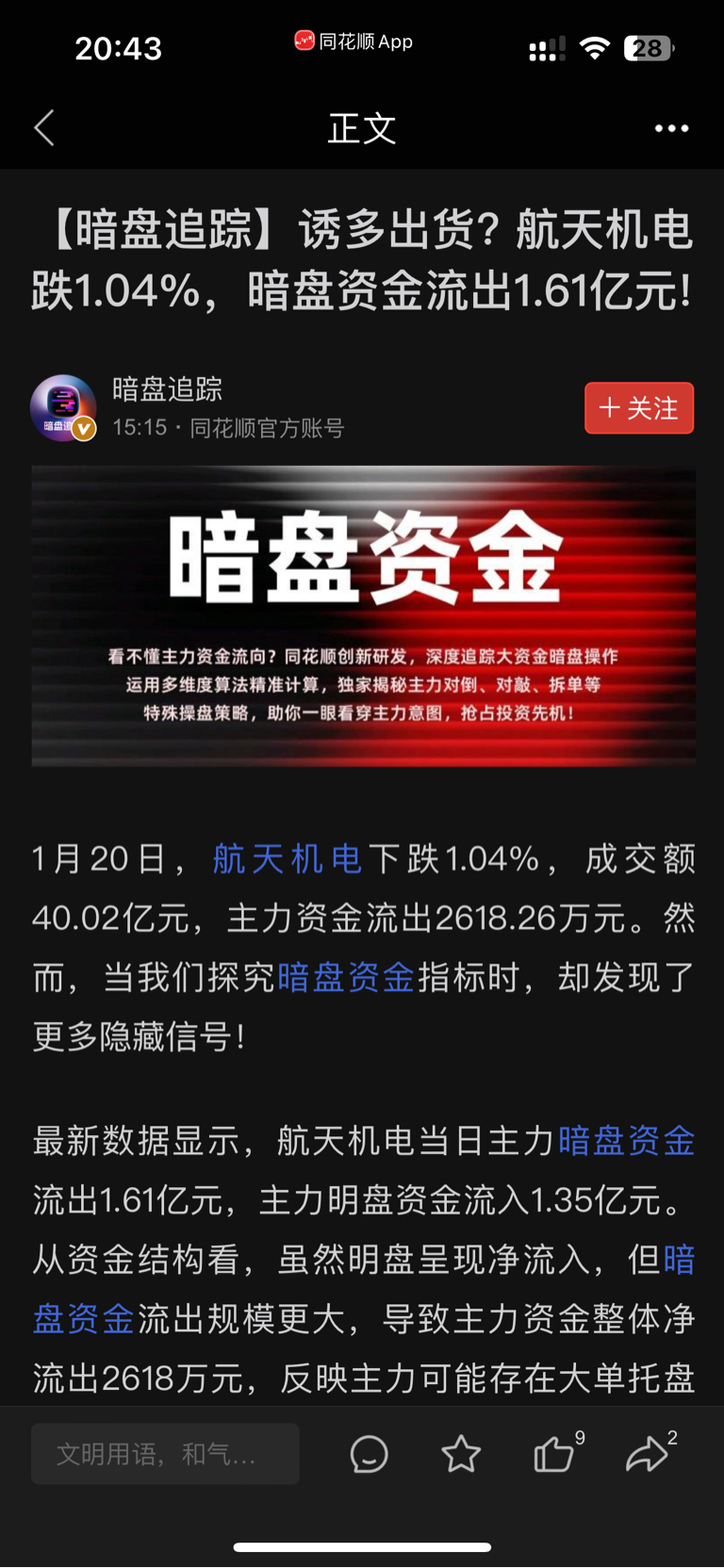 大单拉掩护小单出货。航天发展没企稳前,别碰,散户最大的优势就是跑的快。别买了