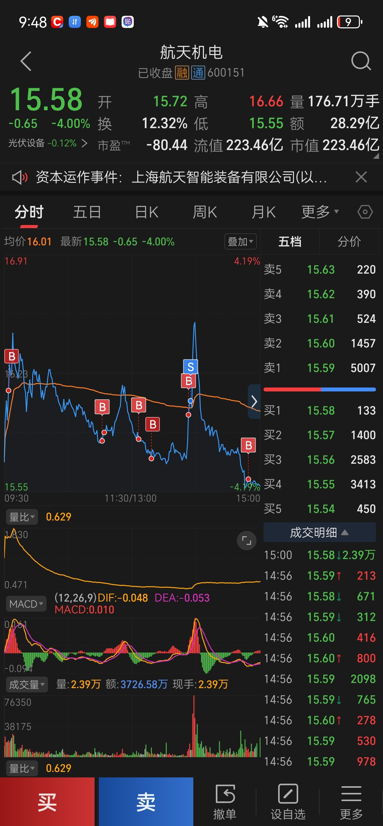 $航天机电(SH600151)$ 主力,我今天低价卖了五院中国卫星500股(97块),又净买入机电1200股,你代客理财的资金有那个能力,我就陪你一路到2块,我不走,不是不知道短暂规避动作能降低损失,而是我要见证航天机电从被狙击到雄起的全部周期。
