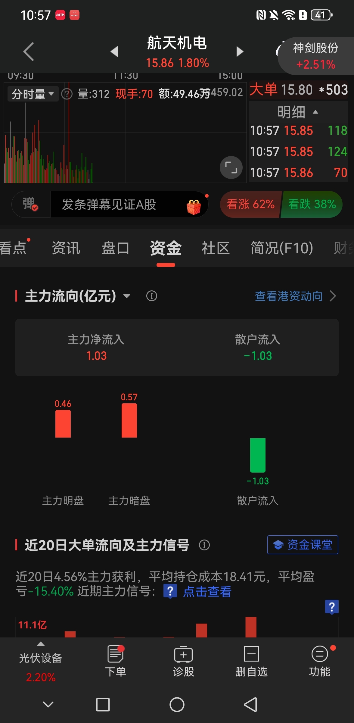 $航天机电(SH600151)$ 一个上午进的资金两分钟砸7千万,后面这一点,再来一击,昨天一样,收盘不得绿