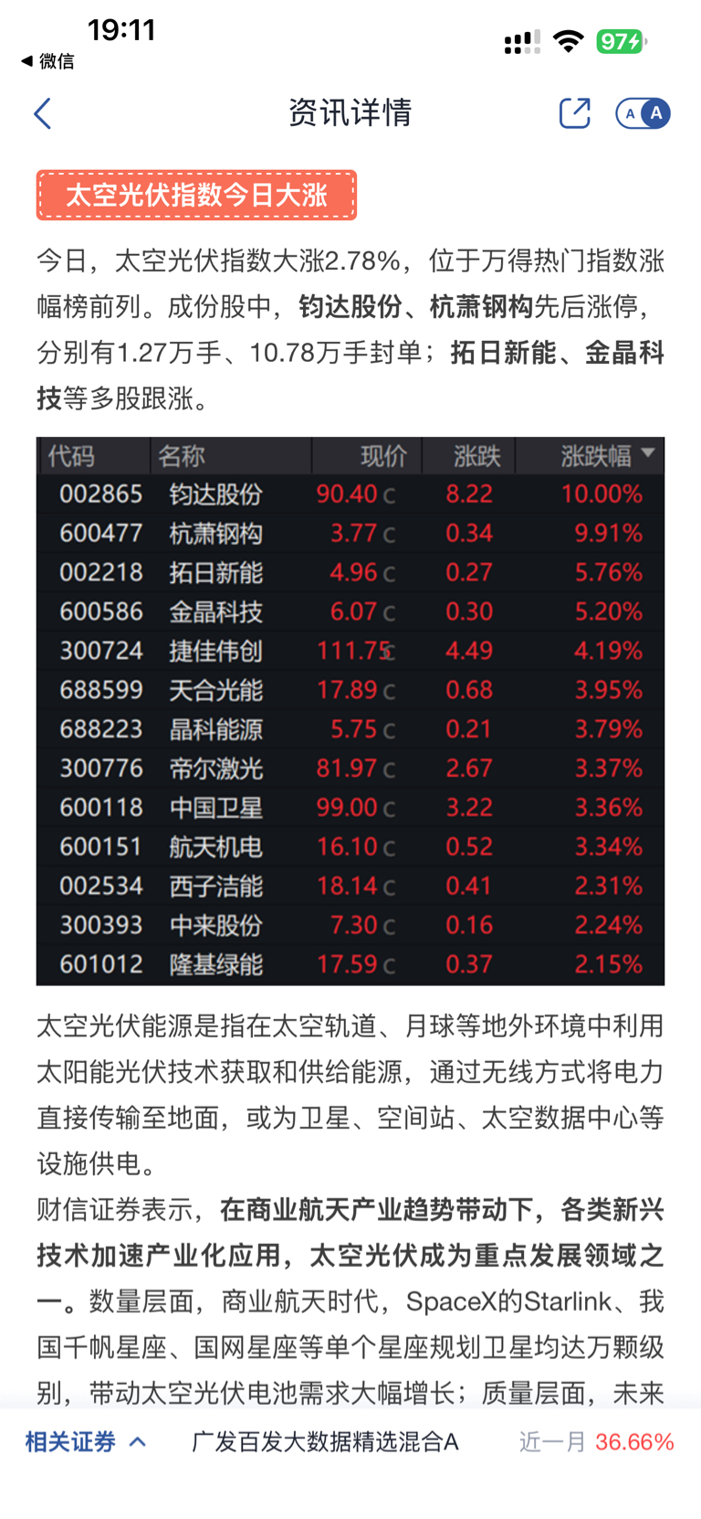 $航天机电(SH600151)$ 为什么别的软件有太空光伏指数,而且机电也在列东财还没有