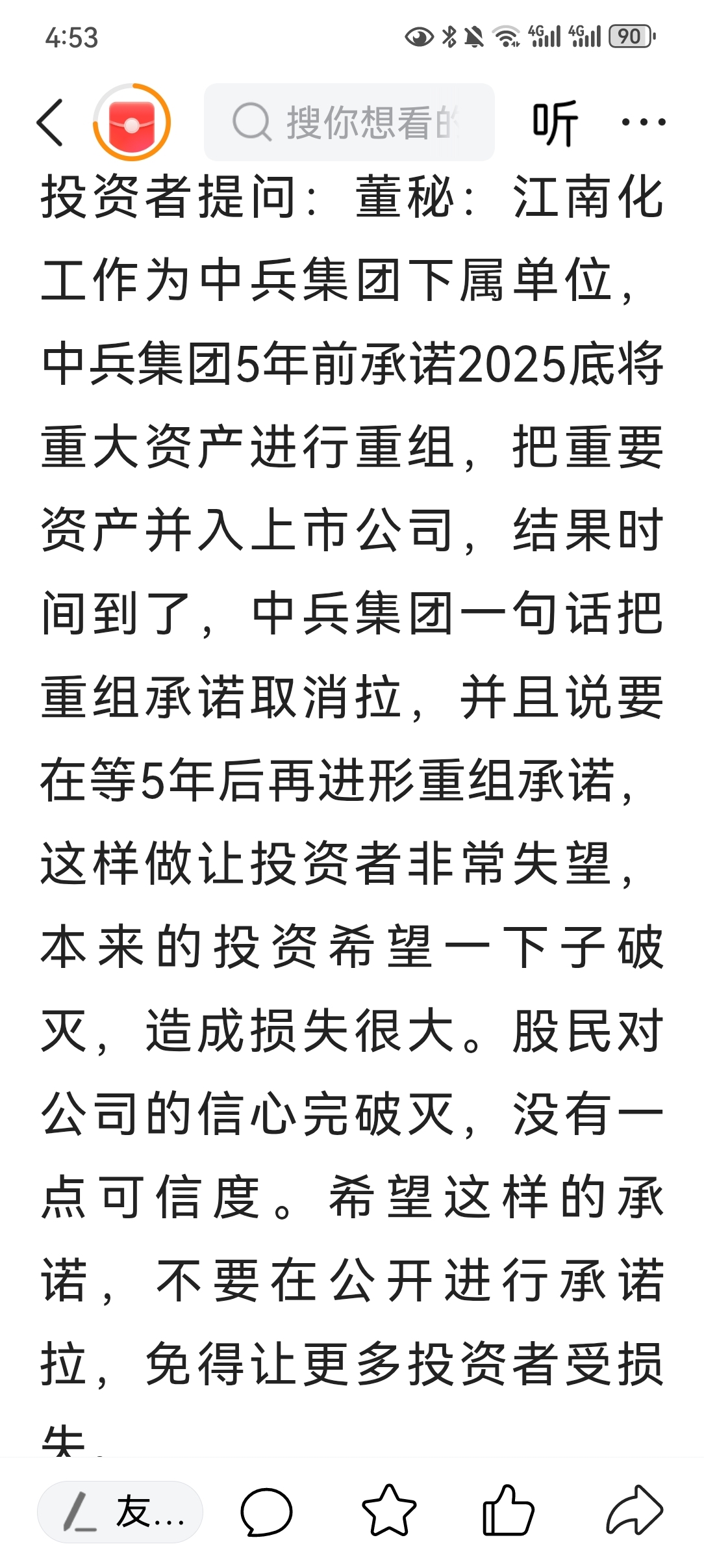 $航天机电(SH600151)$ 江南化工,5年前发出跟航天鸡店一样的公告,承诺2025年前完成资产注入,结果是让在等5年,伤了多少股民的心,同样的背靠央企,资产重组不确定性太多