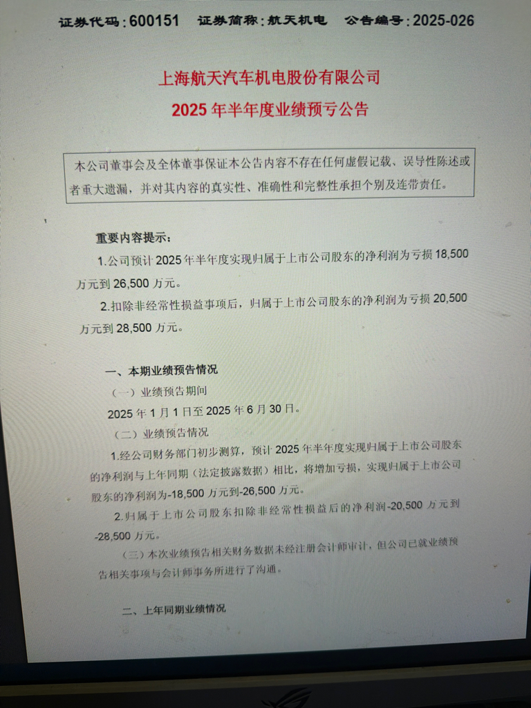 $航天机电(SH600151)$ 其实看半年报大家其实都有预期今年全年机电净利润大概-40000万到-60000万之间,因为半年他已经亏损18500万到26500万了已经,下半年如果没有大的订单加上他的主业光伏及汽车热系统竞争激励。那么今天发公告就很耐人寻味了。我觉得可能第一是庄想趁周一下杀吃一波带血的筹码第二是上面想给商业航天这条赛道再降降温。但是长期机电还是看好的