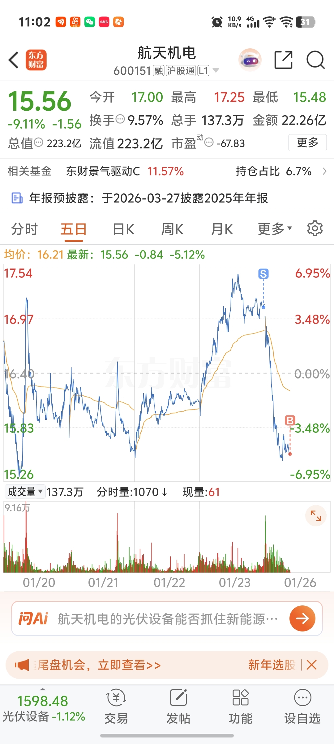 $航天机电(SH600151)$ 一上午了就是不跌停想左侧赌一波
