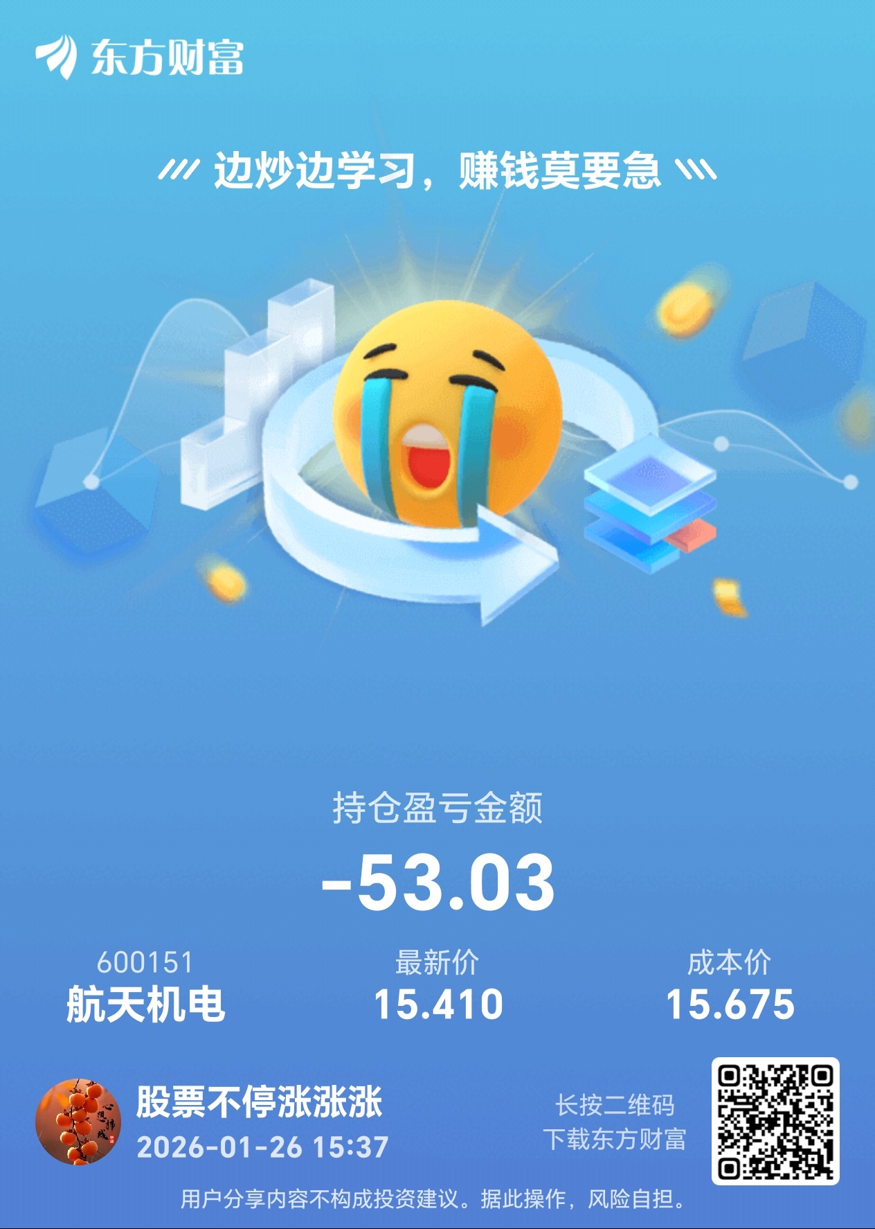 温馨提示: 1.根据《证券法》规定,禁止编造、传播虚假信息或者误导性信息,扰乱证券市场;2.用户在本社区发表的所有资料、言论等仅代表个人观点,与本网站立场无关,不对您构成任何投资建议。用户应基于自己的独立判断,自行决定证券投资并承担相应风险。《东方财富社区管理规定》