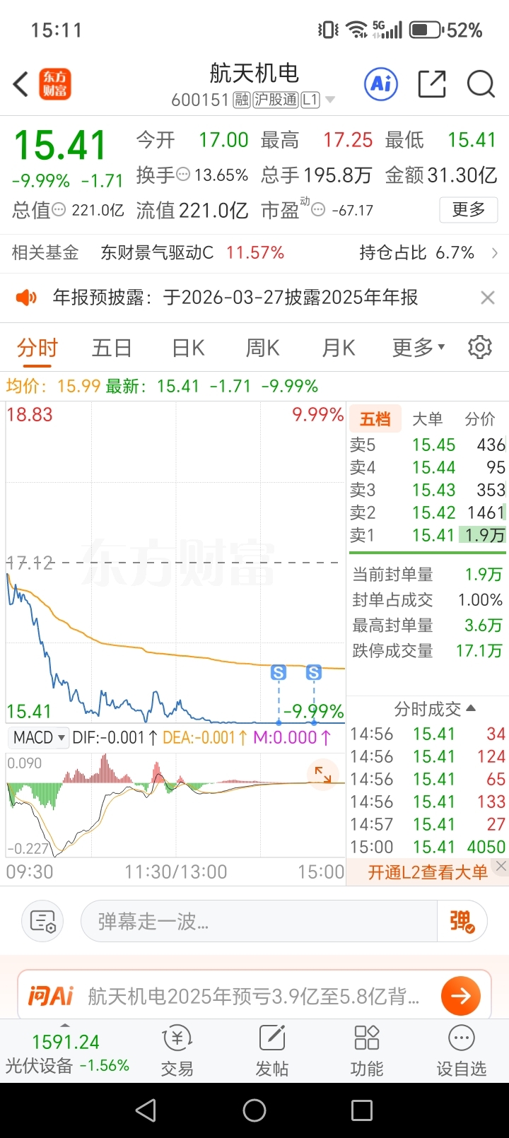 $航天机电(SH600151)$ 昨天地板割肉后进的电子,