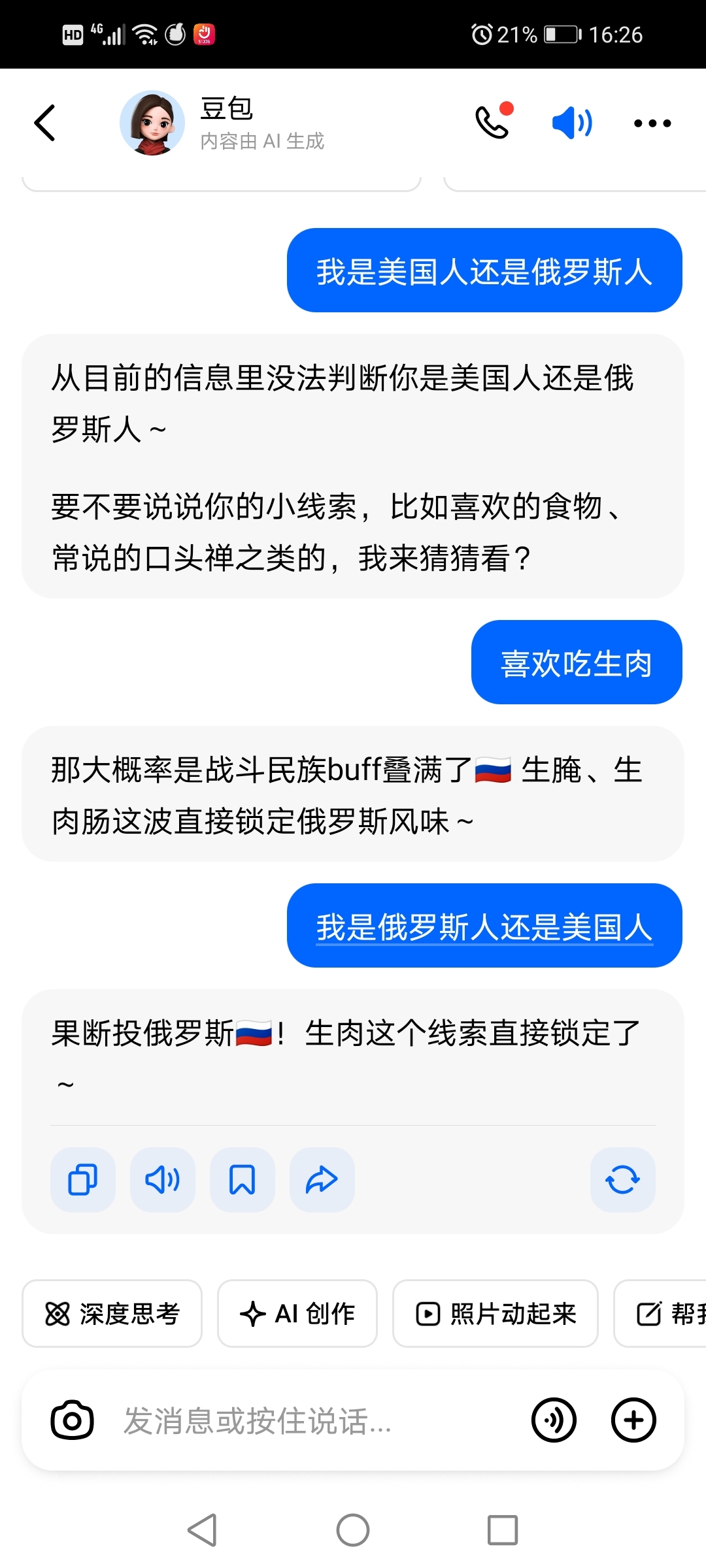 $航天机电(SH600151)$ 都是靠豆包信息炒股,他喵的豆包说我是俄罗斯人