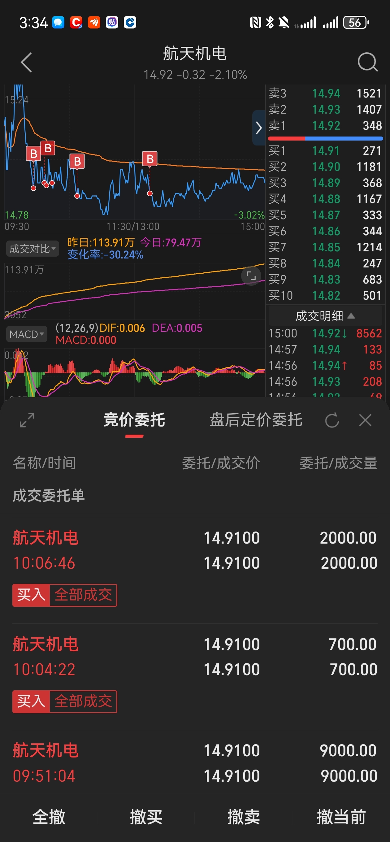 $航天机电(SH600151)$ 抱怨归抱怨,该上还得上,今天花20万,买入机电