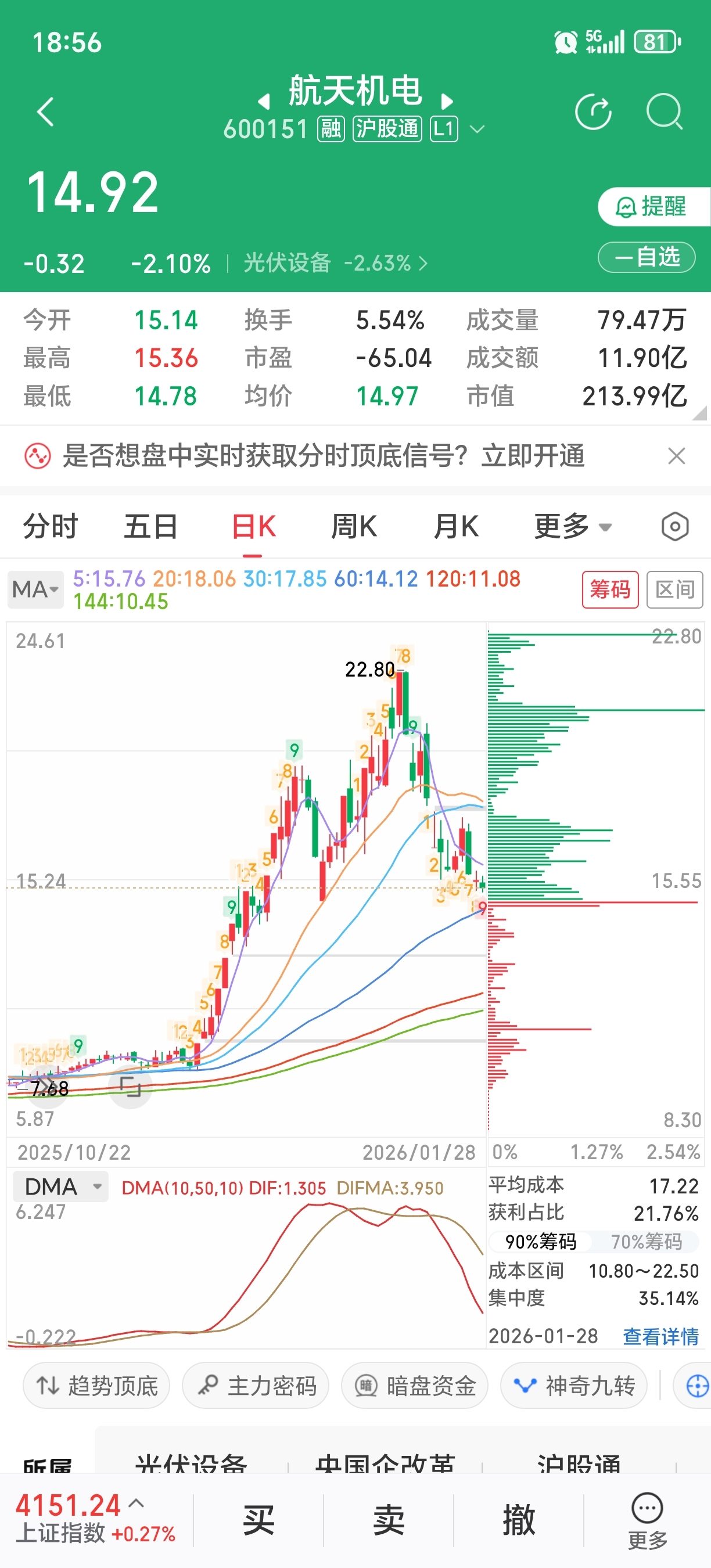 $航天机电(SH600151)$ 没有什么盈利的了,图啥?