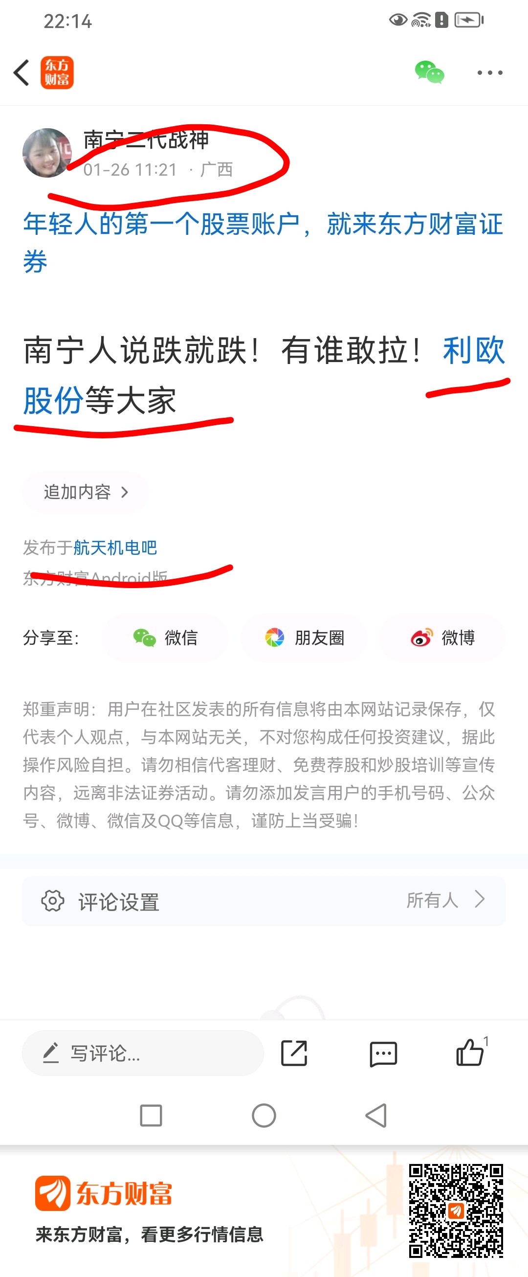 温馨提示: 1.根据《证券法》规定,禁止编造、传播虚假信息或者误导性信息,扰乱证券市场;2.用户在本社区发表的所有资料、言论等仅代表个人观点,与本网站立场无关,不对您构成任何投资建议。用户应基于自己的独立判断,自行决定证券投资并承担相应风险。《东方财富社区管理规定》