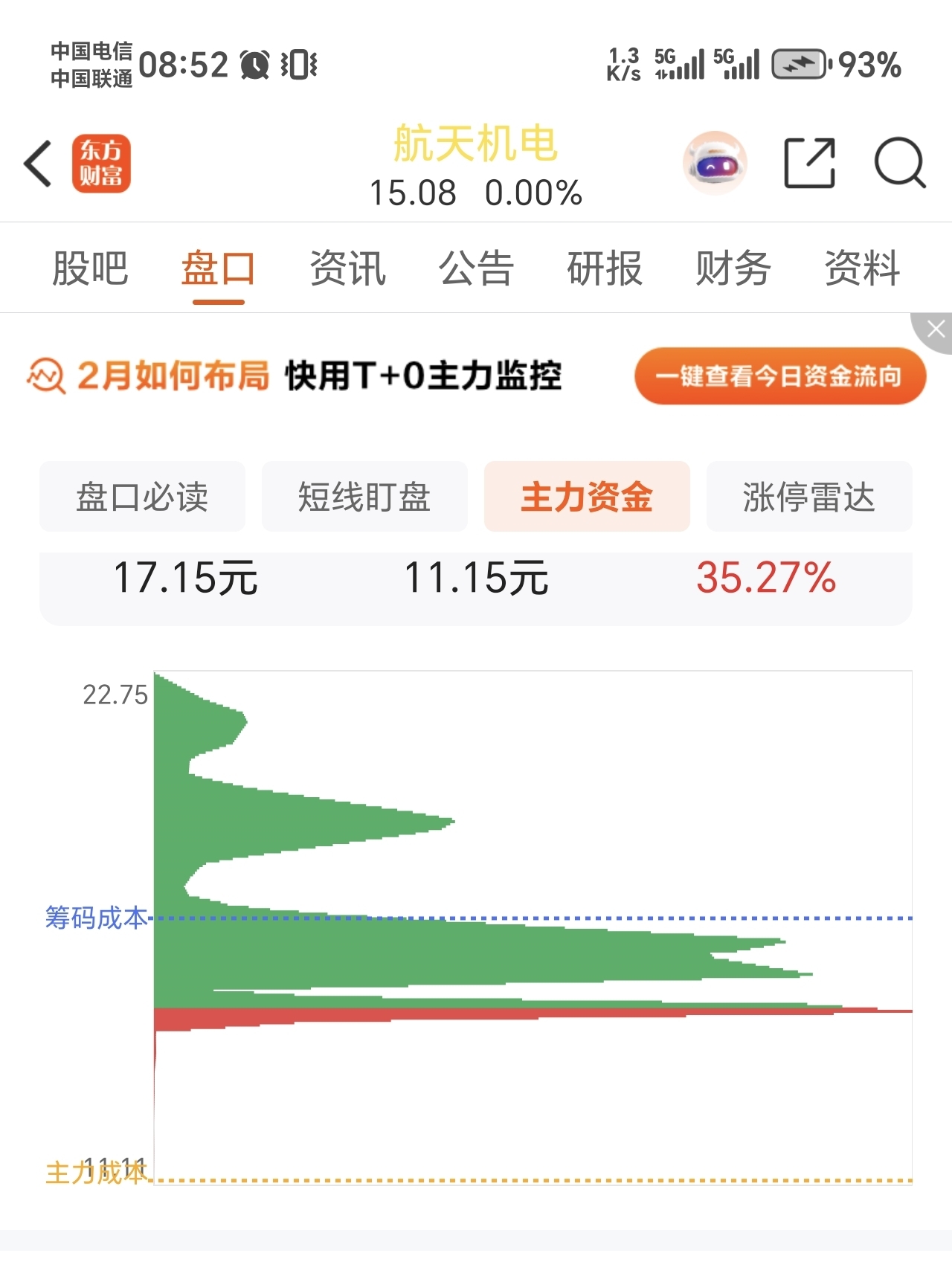 $航天机电(SH600151)$ 看这个筹码峰,获利都快跑完了,全是套牢的,拉升困难,主力不傻,会来给你们抬轿子
