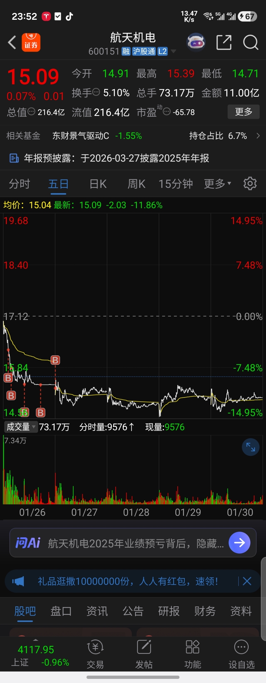 $航天机电(SH600151)$ 好家伙涨一分怒赚800