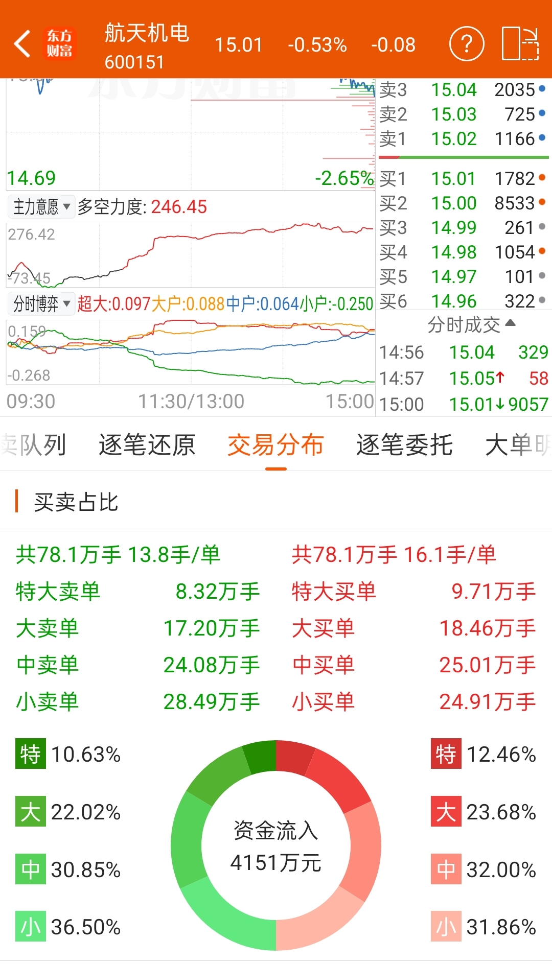 $航天机电(SH600151)$ 真无语全是量化引导散户砸的,问题是大资金筹码根本没动,这散户砸起来抛压还挺猛得