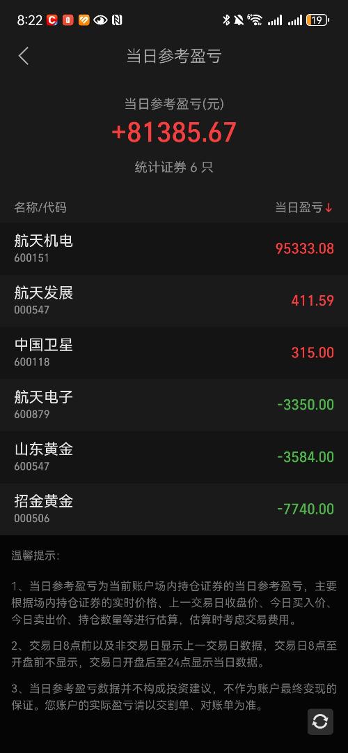 $航天机电(SH600151)$  今日回血13万