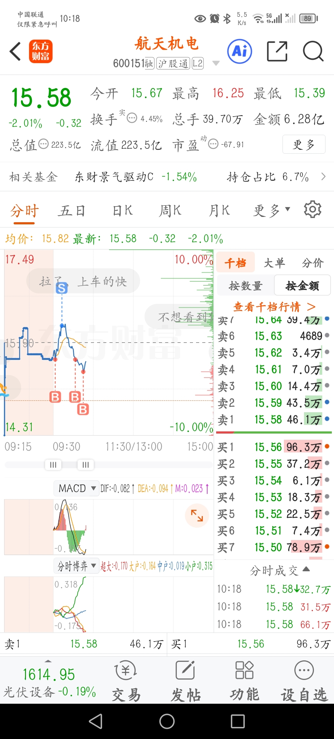 $航天机电(SH600151)$ 实时操作!