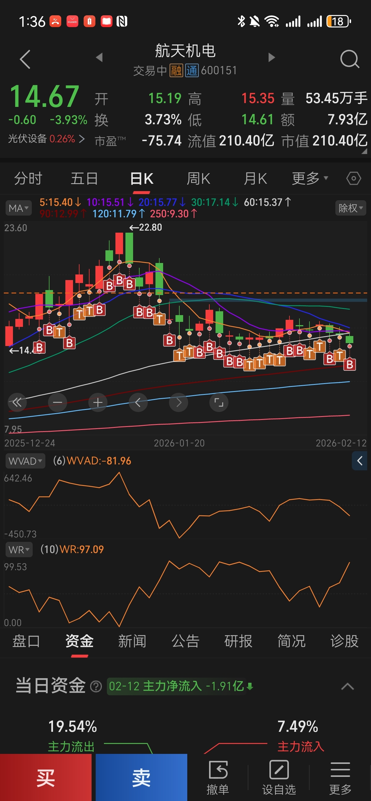 $航天机电(SH600151)$ 买买买,买到18万股了,昨天今天把年终奖和一月工资也买进去了,还卖了1000股山东黄金,又补进去了,成本19块多,从22块多下来的,摊的速度永远赶不上他跌的速度