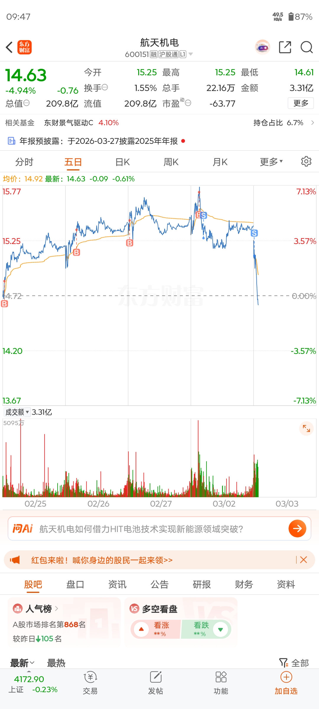 $航天机电(SH600151)$ 没想到这么拉,亏180跑路
