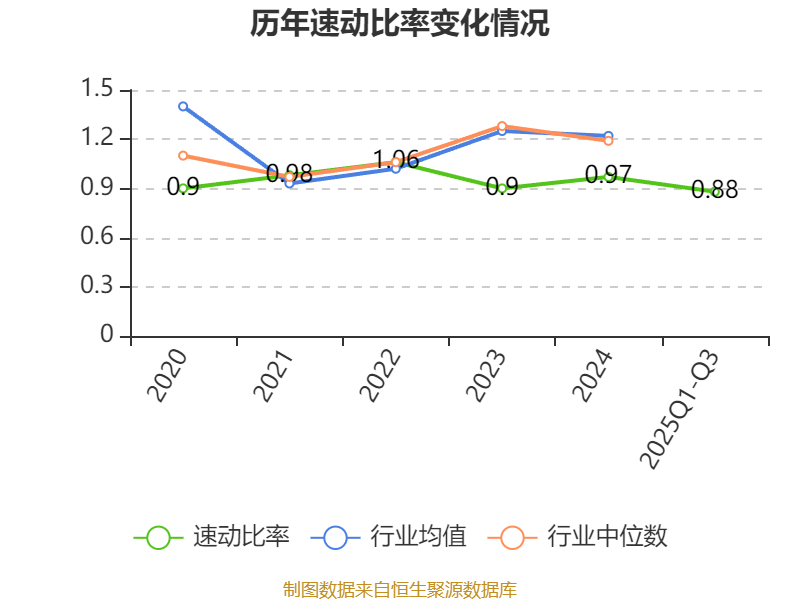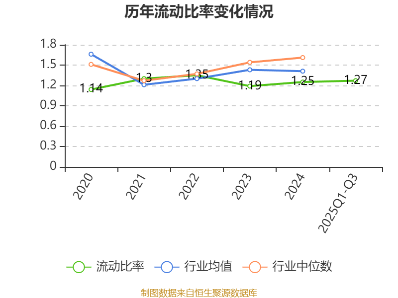 2025年前三季度,公司流动比率为1.27,速动比率为0.88。