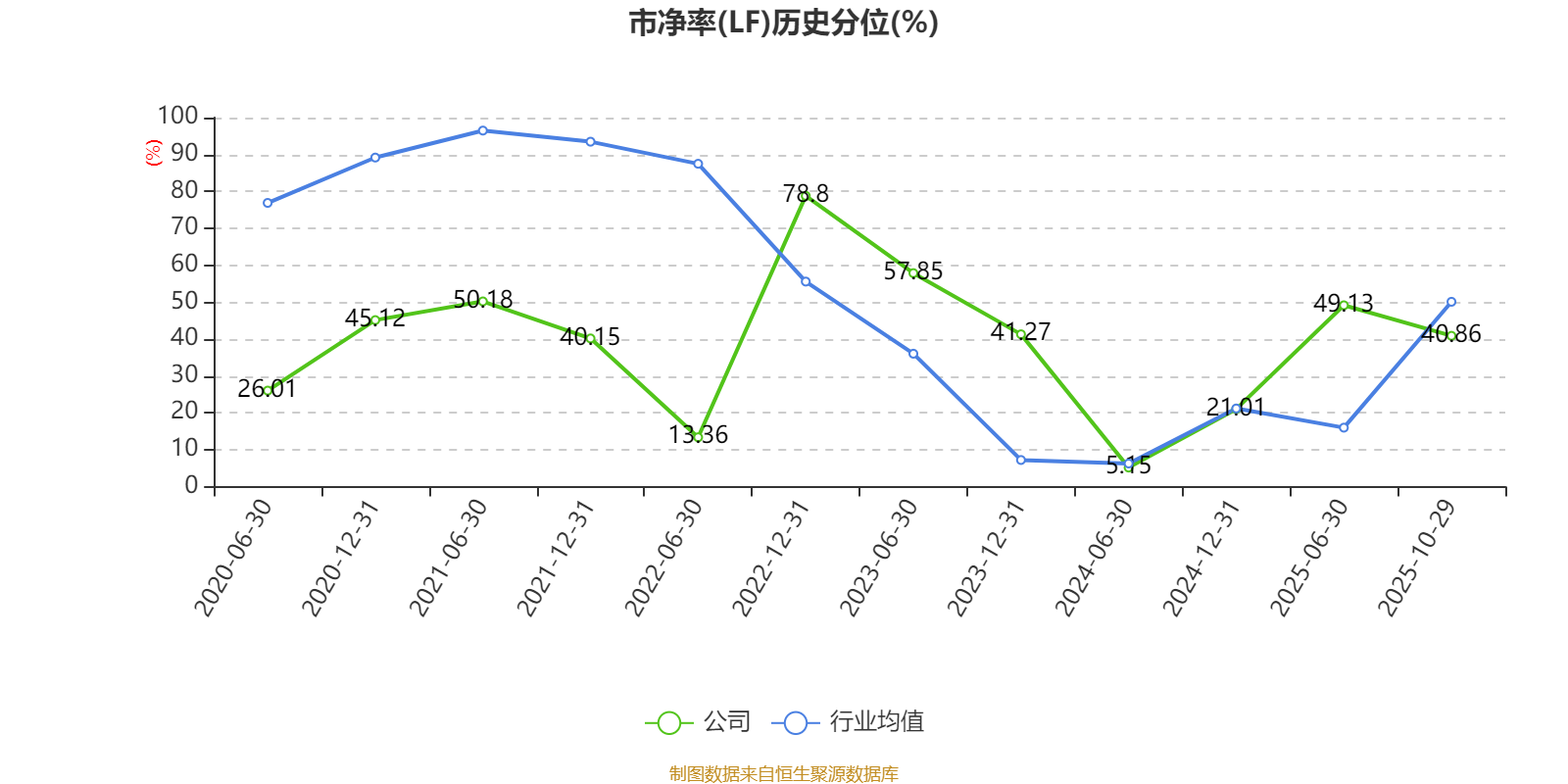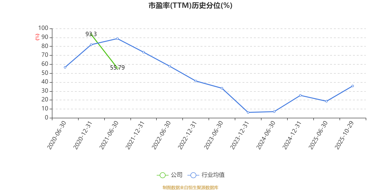 市盈率、市净率为负时,不显示当期分位数,会导致折线图中断。