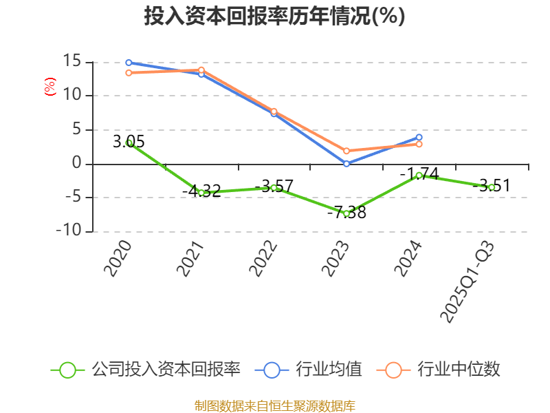 盈利能力方面, 2025年前三季度公司加权平均净资产收益率为-3.43%,同比下降3.46个百分点。公司2025年前三季度投入资本回报率为-3.51%,较上年同期下降3.44个百分点。