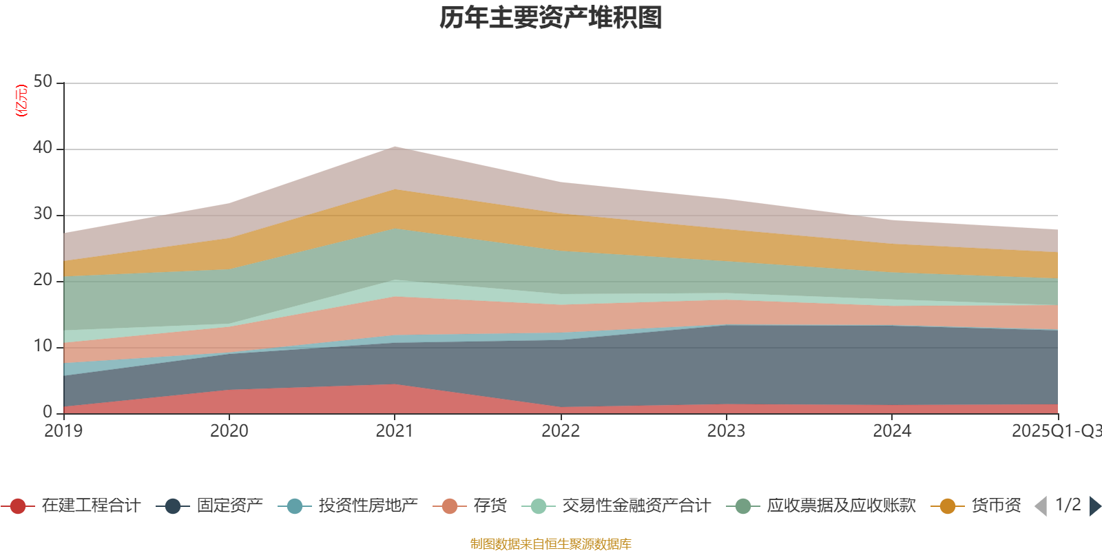 资产重大变化方面,截至2025年三季度末,公司存货较上年末增加28.35%,占公司总资产比重上升3.44个百分点;交易性金融资产合计较上年末减少100%,占公司总资产比重下降3.43个百分点;固定资产较上年末减少6.59%,占公司总资产比重下降0.72个百分点;在建工程合计较上年末增加8.17%,占公司总资产比重上升0.58个百分点。