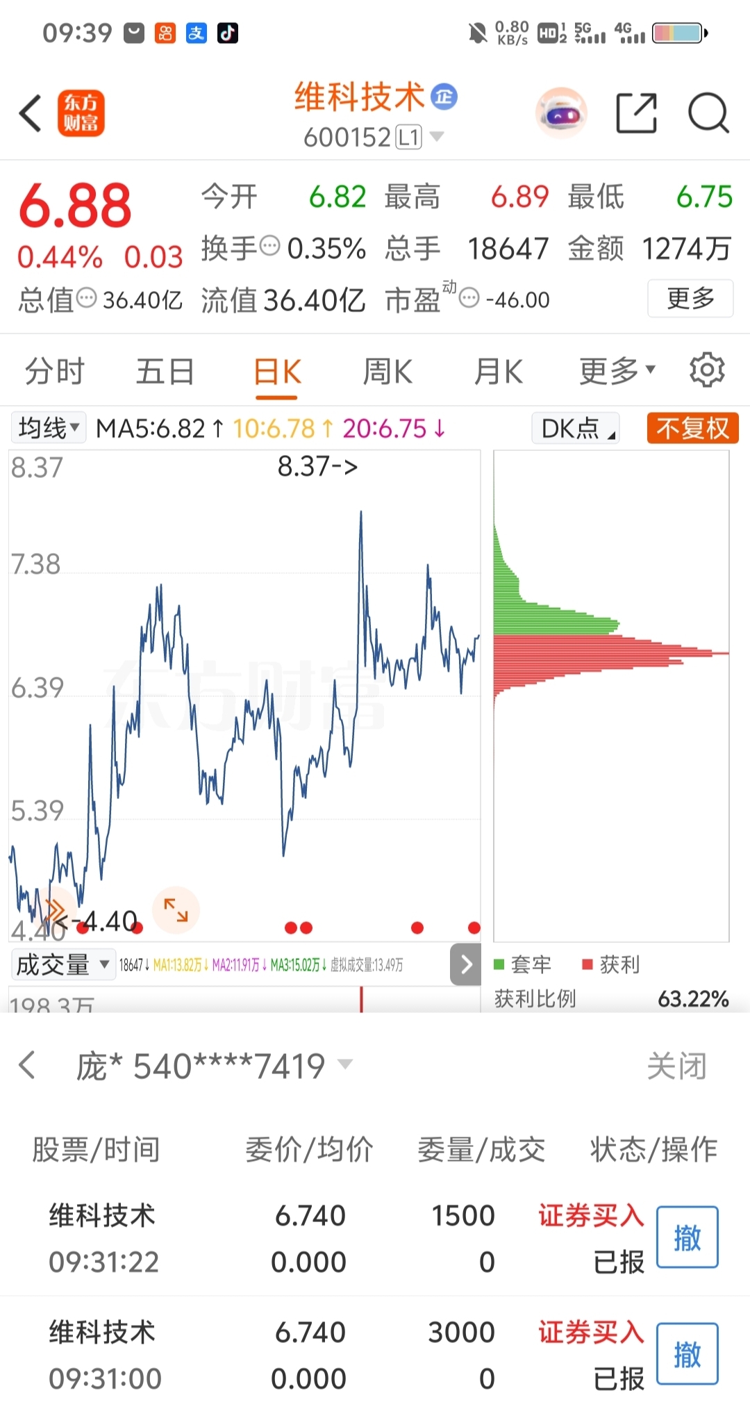 $维科技术(SH600152)$ 别管买还是卖永远卡着我的一分呀哈哈哈