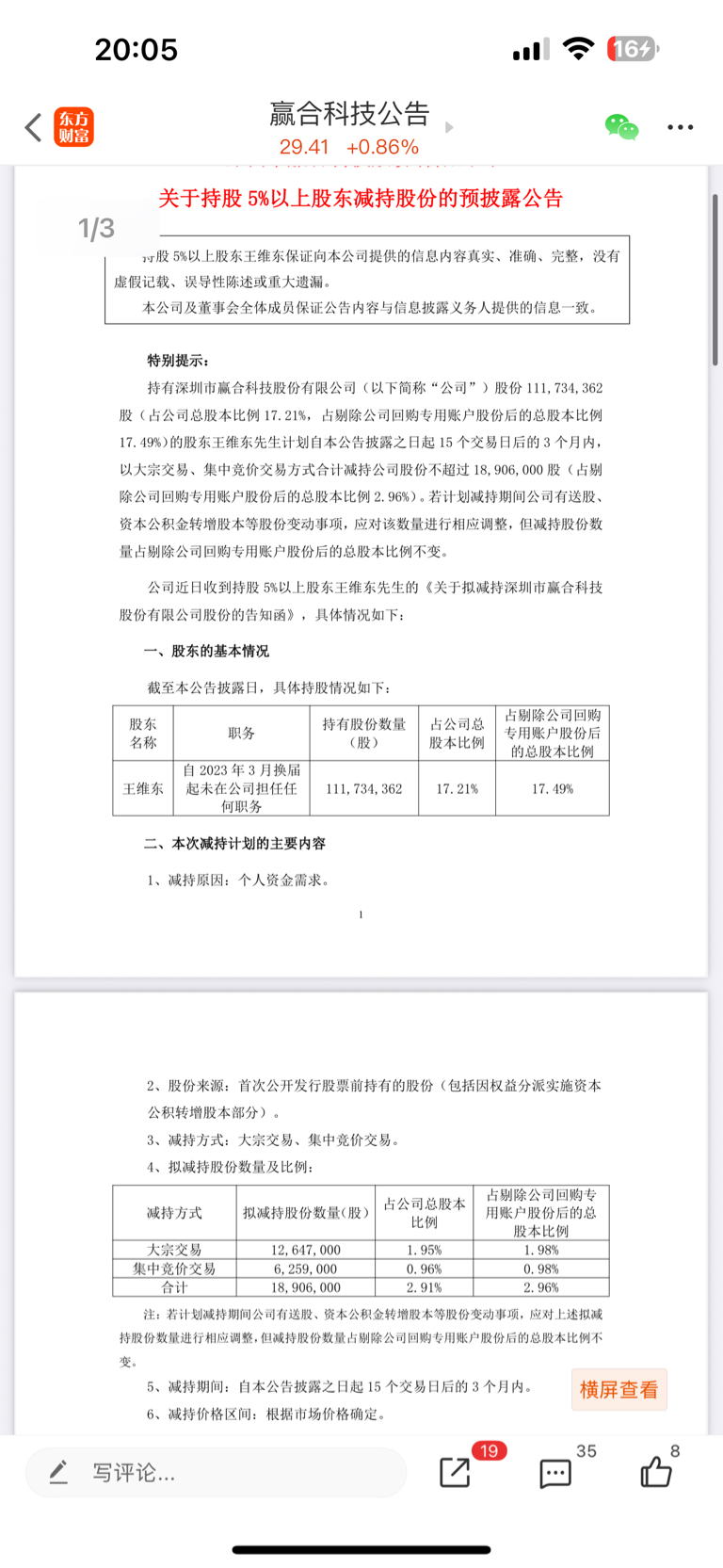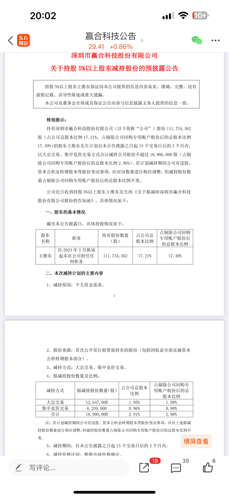 $维科技术(SH600152)$ 赢合科技4月30号减持2.9%(比维科技术这次减1%幅度大多了),当天低开高走涨3%;8月6号高管减持,股价仅小调整,后续8月底直接启动主升浪。