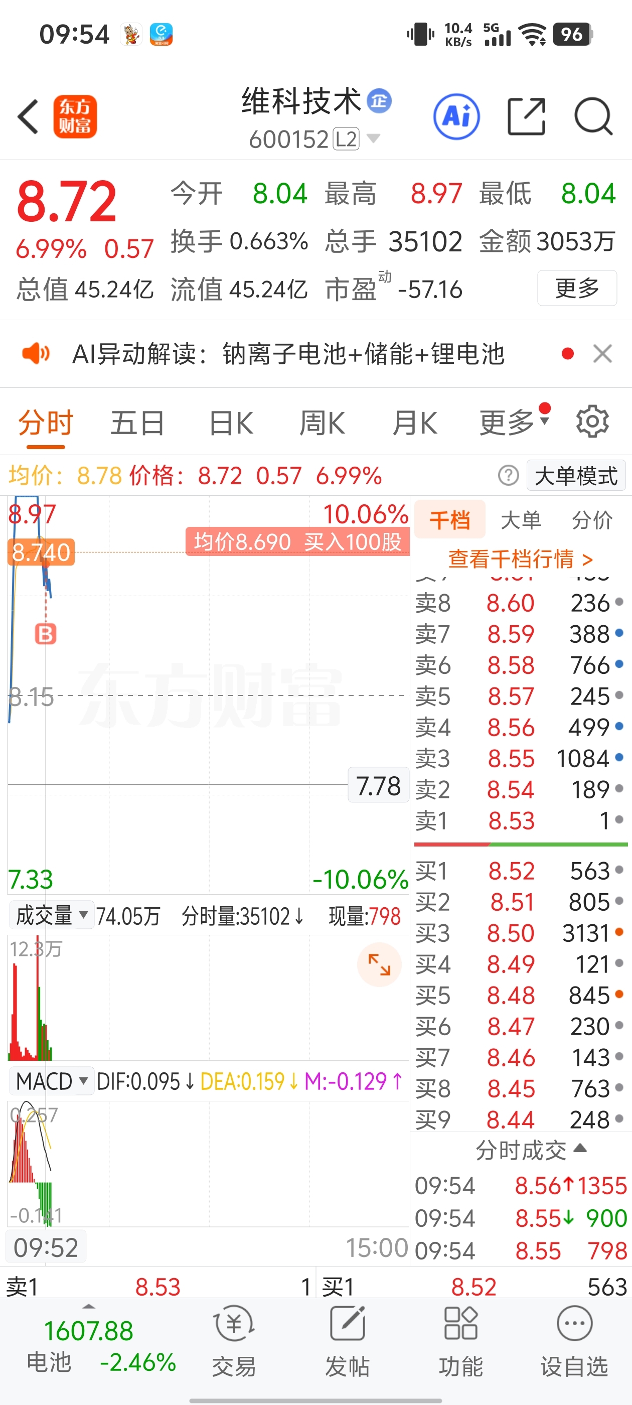 $维科技术(SH600152)$ 买入一手帮你们支撑情绪