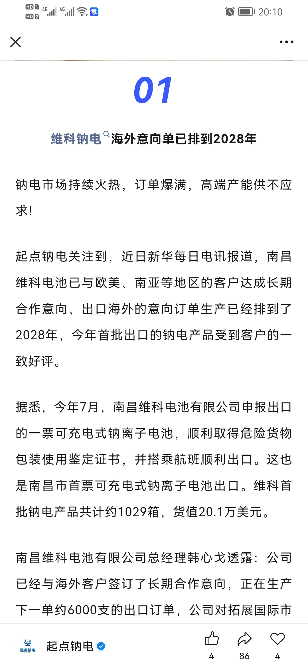 全球钠电龙头维科技术海外订单爆满,已排产到2028年!