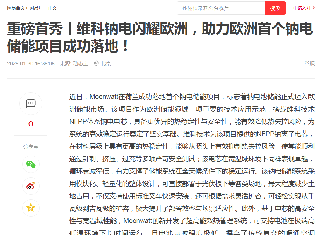 维科技术钠电闪耀欧洲