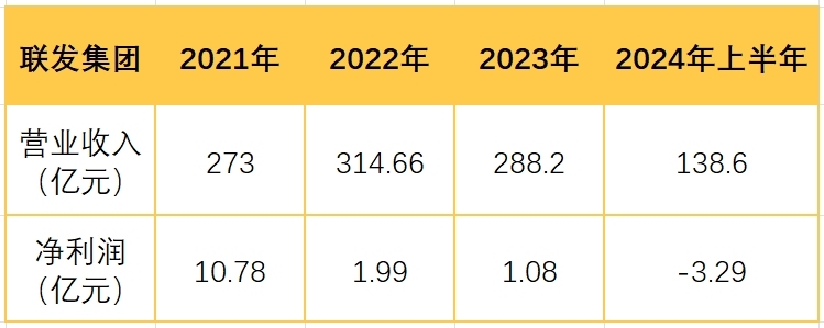 不仅如此,联发集团的盈利情况也每况愈下。根据联发集团公司债券年度报告发布数据显示,其2021年的净利润为10.78亿元,而到了2024年上半年就步入亏损的境地。