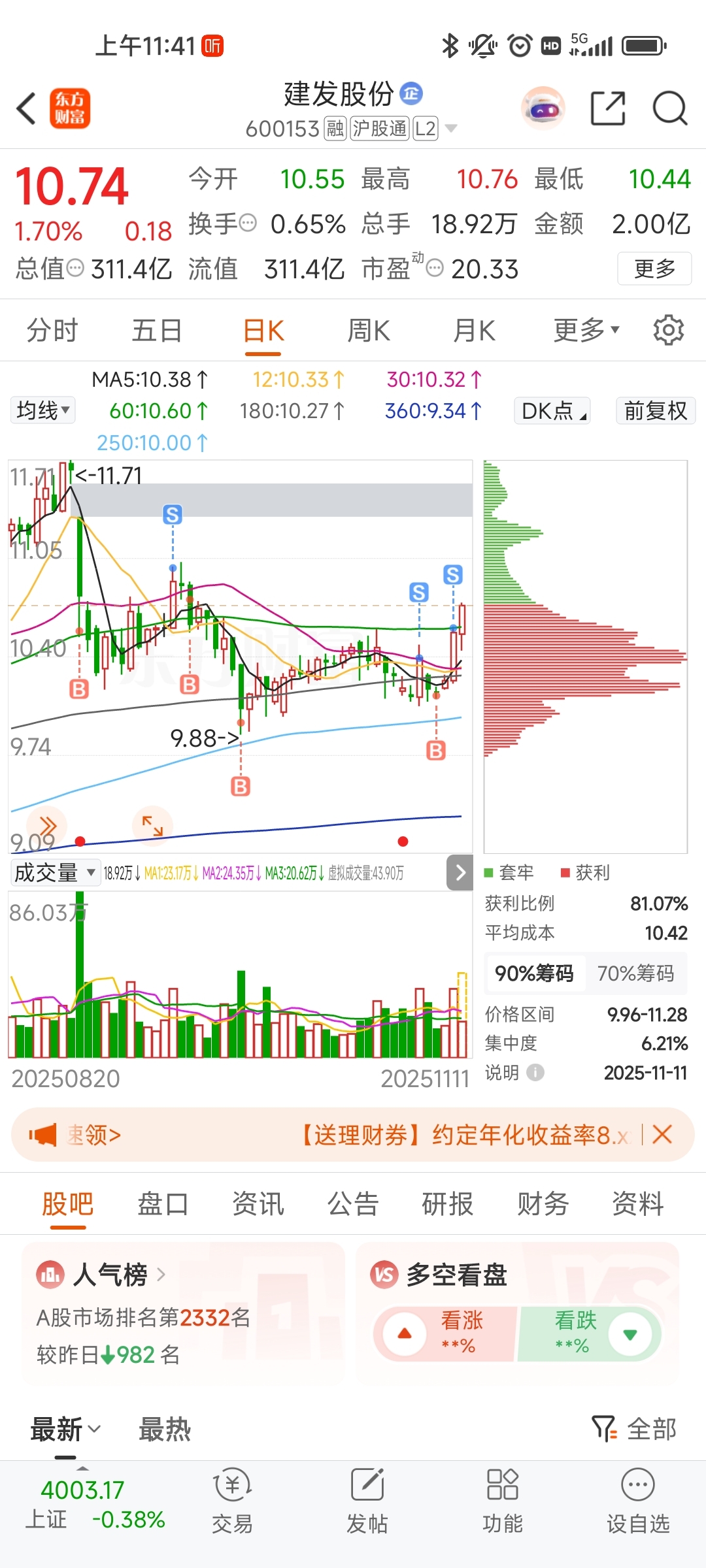 $建发股份(SH600153)$ 昨天刚把补仓的卖了,没想到你竟然牛了。