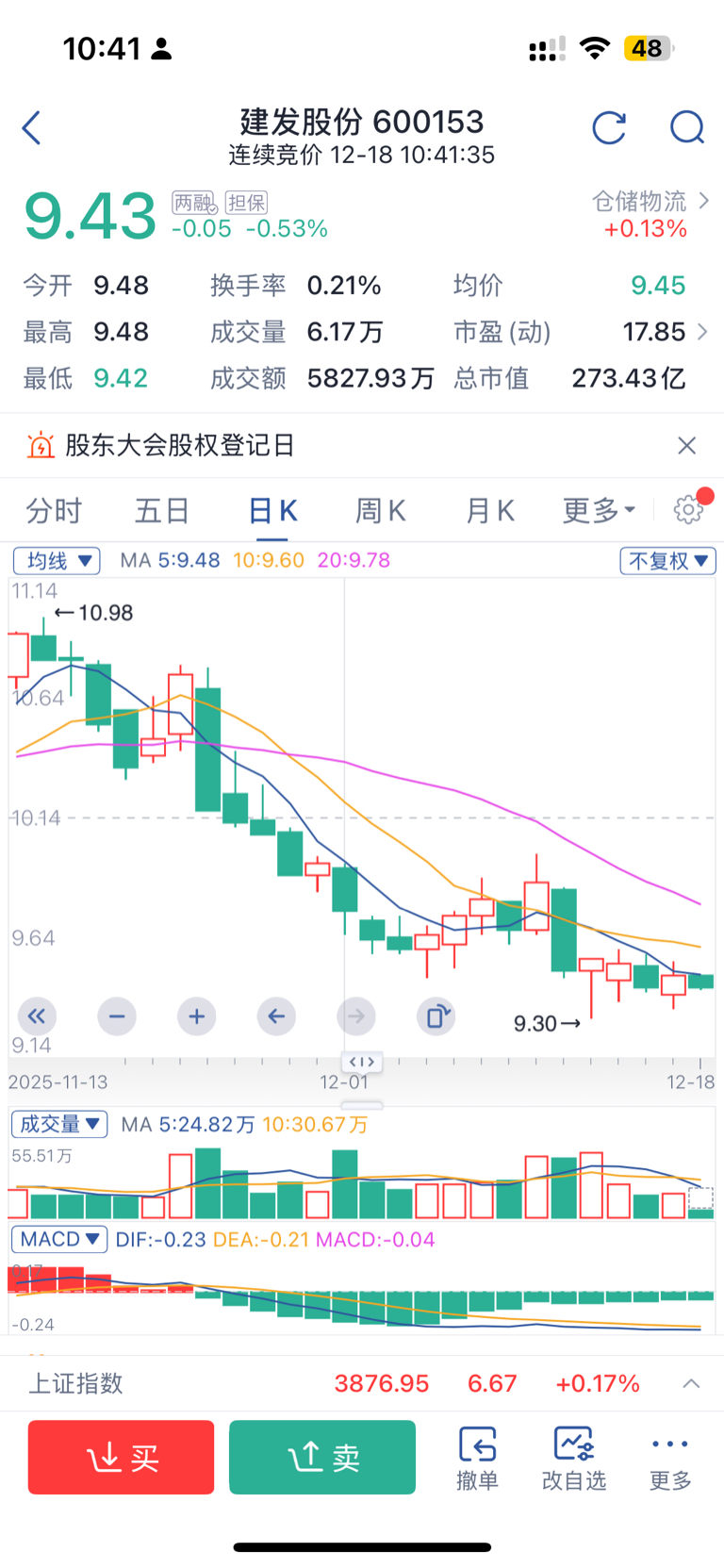 $建发股份(SH600153)$ 一路下跌趋势,距离最高都跌了20个点了吧。这个股应该是被基金减持了。