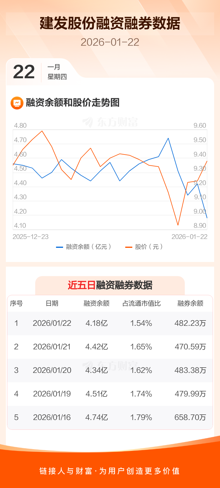 交易所最新数据显示,建发股份于2026年1月22日获融资买入1076.05万元,融资偿还3519.81万元,当日融资净偿还2443.75万元。目前,该股融资余额4.18亿,占流通市值比例为1.54%。
