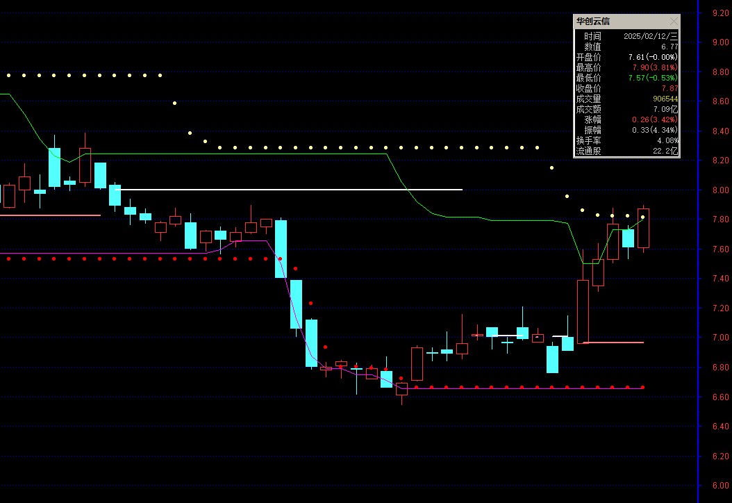L2显示量增价涨今天有大资金进场,收盘7.87突破并站上压力位,明天发出飞龙在天涨停信号 !