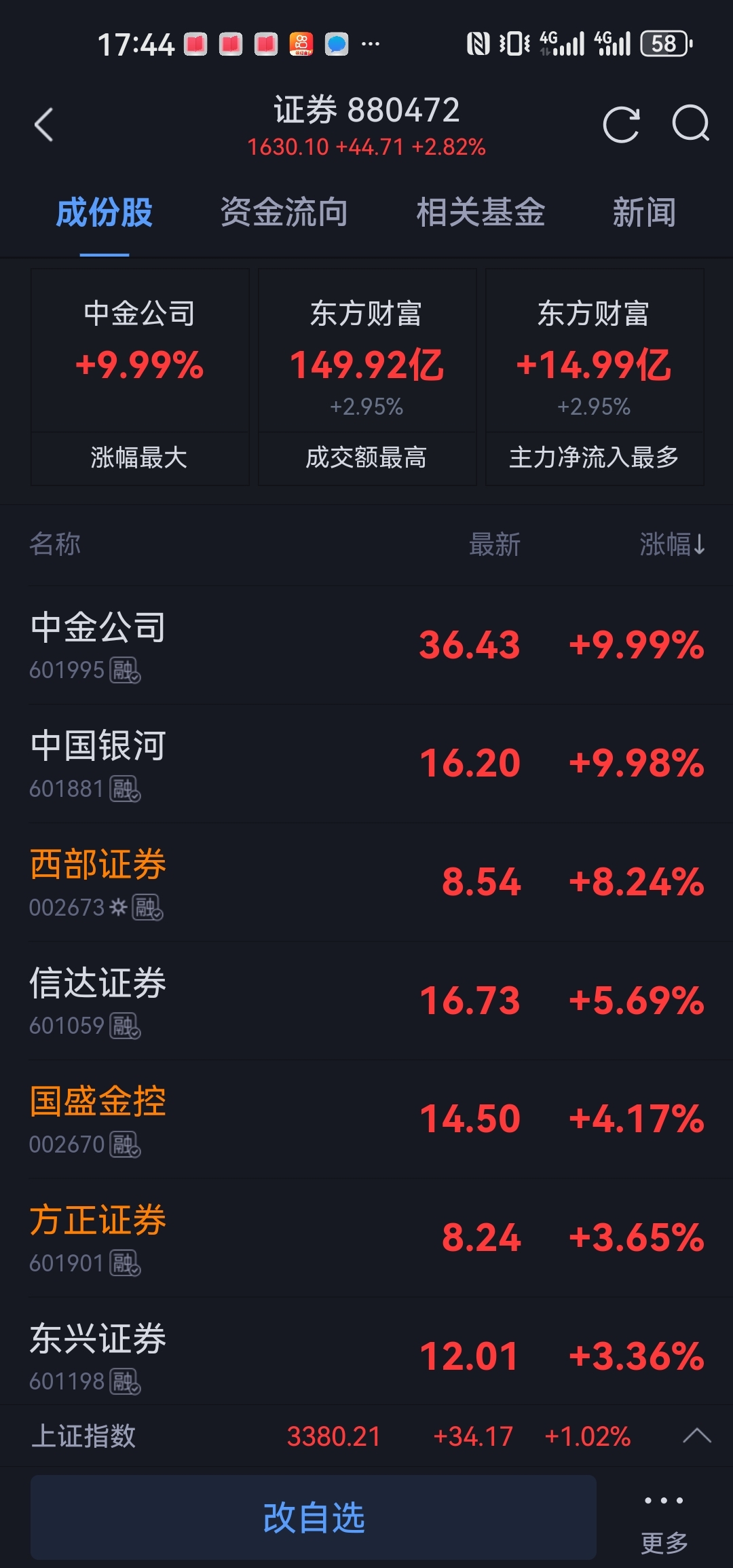 3、中银涨一,没想又来了个中金,带动了证券板块上攻;