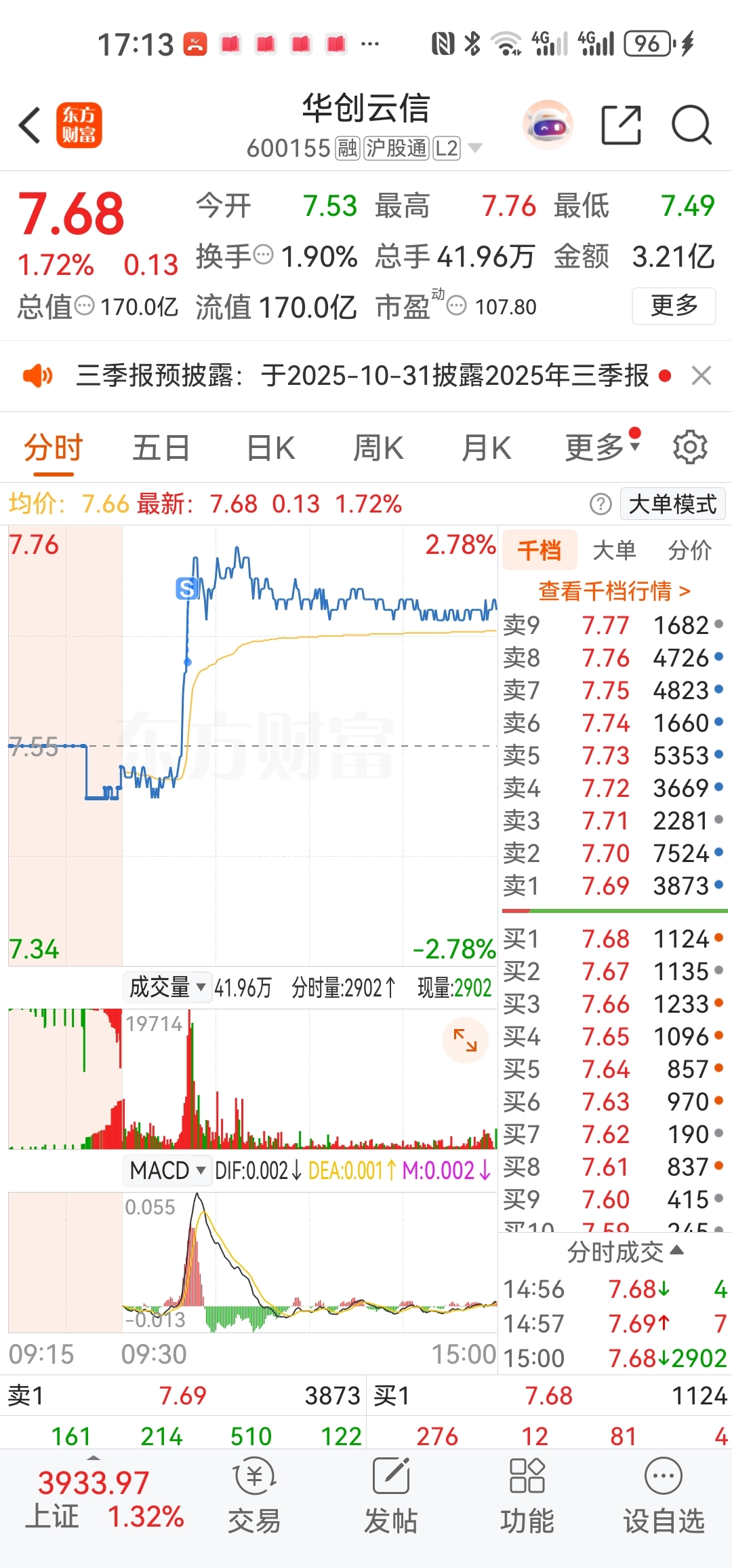 1、今天7.63给T飞了。按这货的尿性,三天之后又会跌回来2、今天没有再追。因为