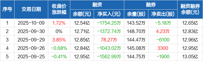 华创云信:融资净偿还1754.25万元,融资余额12.54亿元(10-09)