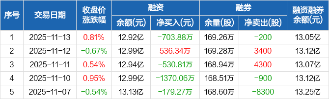 华创云信:融资净偿还703.88万元,融资余额12.92亿元(11-13)