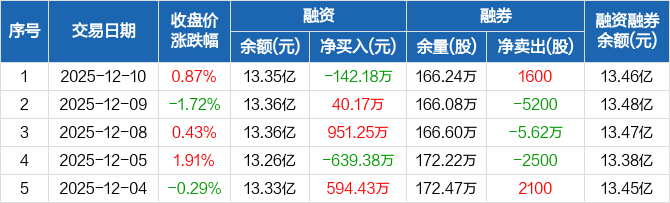 华创云信:融资净偿还142.18万元,融资余额13.35亿元(12-10)
