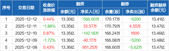 华创云信:融资净偿还566.9万元,融资余额13.3亿元(12-12)