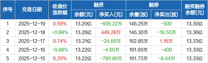 华创云信:融资净偿还609.22万元,融资余额13.2亿元(12-19)