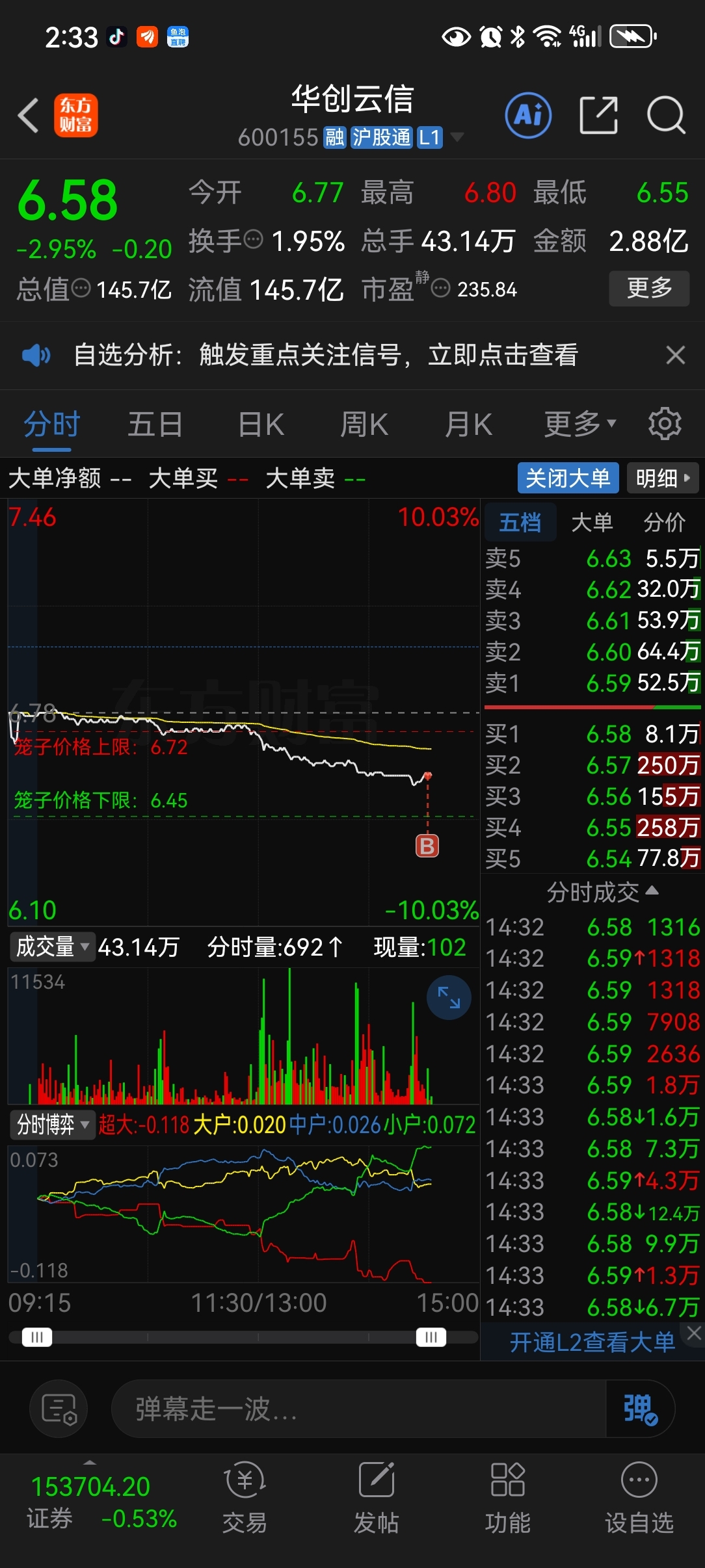 $华创云信(SH600155)$ 加仓了到6块钱再买点