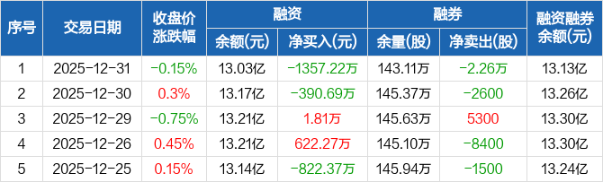华创云信:融资净偿还1357.22万元,融资余额13.03亿元(12-31)