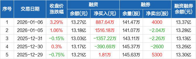 华创云信:融资净买入887.64万元,融资余额13.27亿元(01-06)
