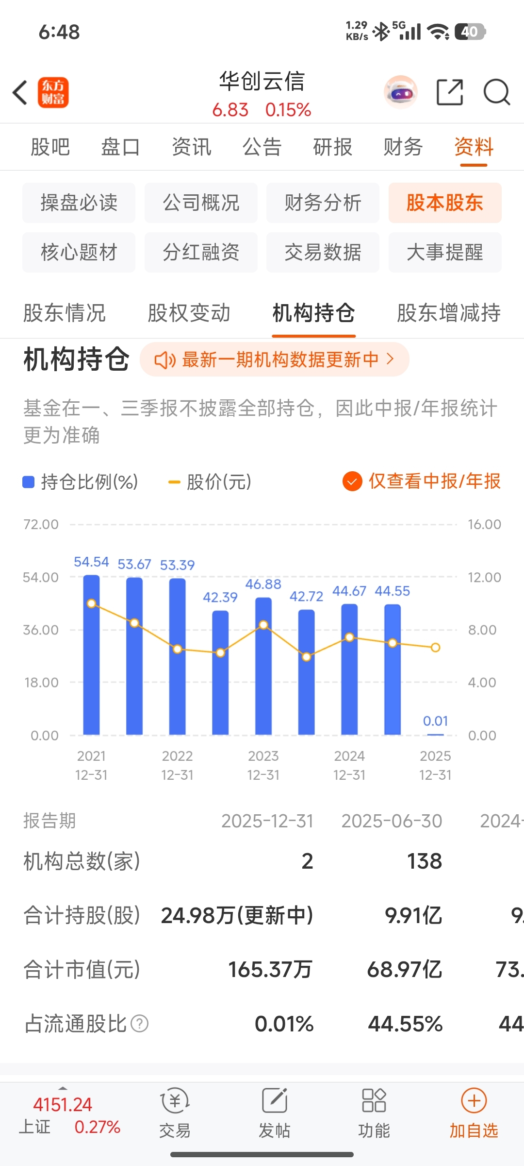 $华创云信(SH600155)$ 这是一年减完了么