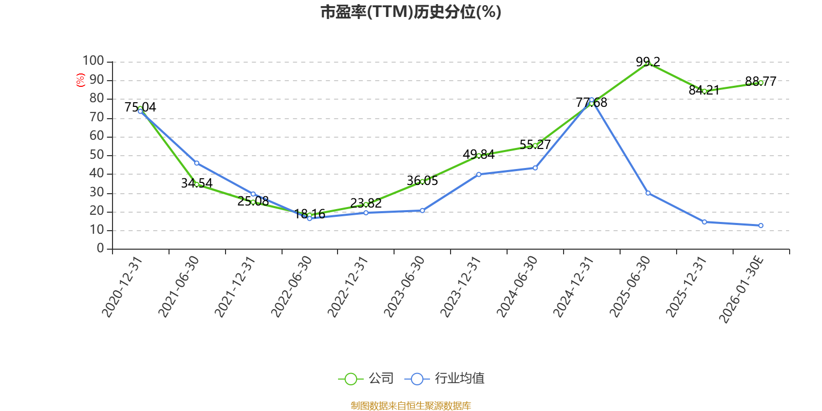 以本次披露业绩预告均值计算,公司近年市盈率(TTM)图如下所示: