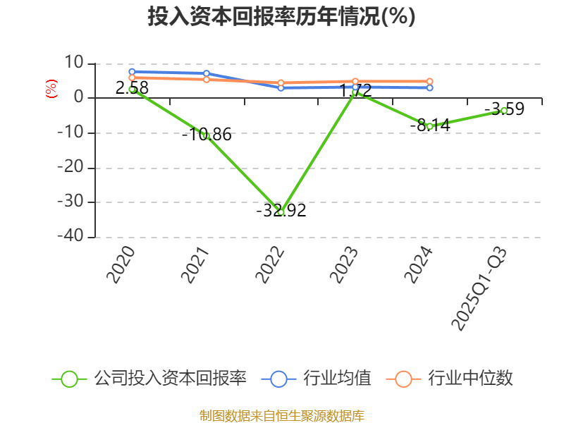 盈利能力方面, 2025年前三季度公司加权平均净资产收益率为-3.82%,同比上升1个百分点。公司2025年前三季度投入资本回报率为-3.59%,较上年同期下降0.02个百分点。